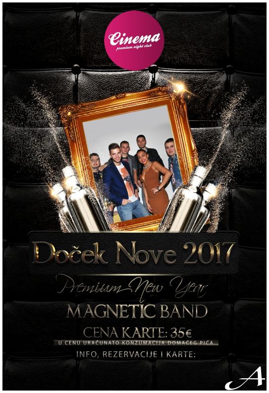 Doček Nove 2017. godine u klubu Cinema uz fenomenalni Magnetic bend, koji će novogodišnju atmosferu i euforiju dovesti do usijanja.