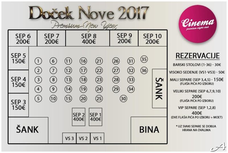 * Svaka rezervacija separea dobija gratis jednu ili dve flaše stranog pića po izboru