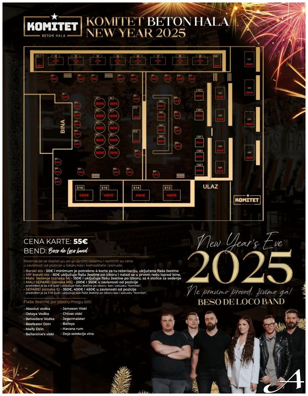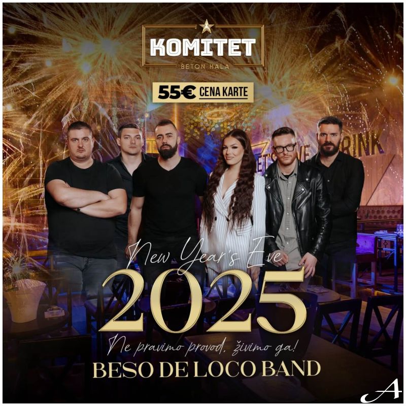 Klub Komitet vas i ove godine poziva na nezaboravan doček Nove godine 2025, koji obećava energiju, glamur i veče puno iznenađenja! Na sceni će nastupiti Beso de Loco bend, koji će atmosferu podići na viši nivo i obezbediti spektakl za pamćenje. Spremite se za senzacionalnu noć ispunjenu muzikom, plesom i fantastičnom zabavom.