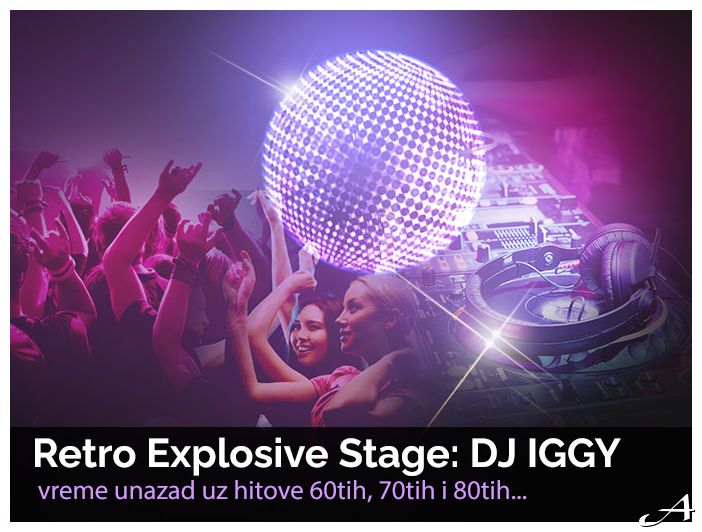 Retro Explosive Stage: DJ IGGYDJ IGGY će vas ubaciti u vremeplov i provozati kroz najveće hitove 70-ih, 80-ih i 90-ih. Biće tu svih muzičkih pravaca, i domaće (naročito Ex-YU) i strane muzike, tako da materijala ima sasvim dovoljno da celo veče slušate samo najveće hitove koji traju i danas! Ovaj stage je prava “vremenska mašina" i u jednom trenutku ćete se osećati kao “dete cveća", u drugom kao “disco dancer" iz 70-ih a u trećem kao Ex-YU pionir.