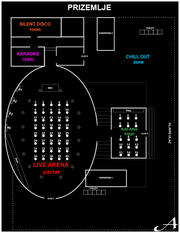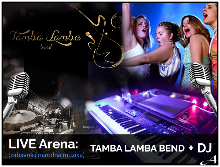 Live Arena (zabavna i narodna muzika): Tamba Lamba bendNajveći i najpopularniji Stage koji obuhvata dva nivoa, prvi nivo je elipsastog oblika a drugi je u obliku prstena i okružuje ceo prostor. Tamba Lamba bend će svirati kvalitetnu domaću zabavnu i narodnu muziku, a u pauzama ga pokriva DJ sa najvećim hitovima domaće i strane muzike + vrhunsko ozvučenje i rasveta i 700 raspoloženih ljudi.
