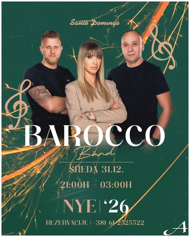 Barocco band će vas zabavljati svojim nastupom, obećavajući noć punu dobre muzike i nezaboravnog provoda.