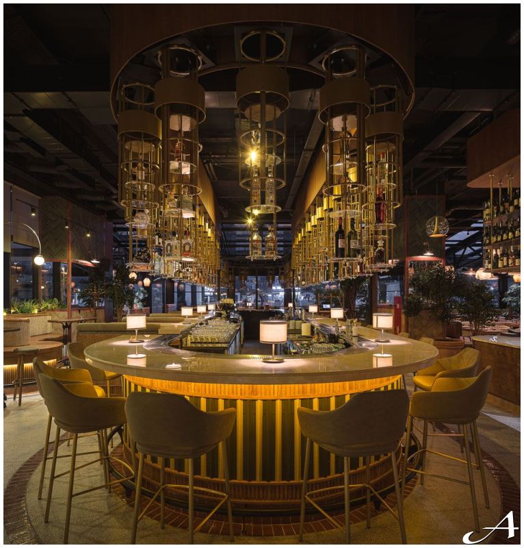 Zbog staklenog plafona, dobar deo restorana podseća na ogromnu baštu zbog koje stičete utisak da ste na otvorenom, iako ste ušuškani u toplom ambijentu sa mnoštvom različitih udobnih restoranskih stolova, separea i visokih sedenja.
