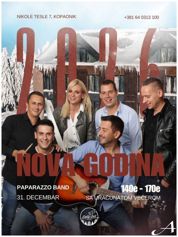 Paparazzo benda, koji će svojim repertoarom učiniti ovu noć zaista posebnom. Očekuje vas atmosfera puna radosti, plesa i veselja, idealna za ispraćaj stare i