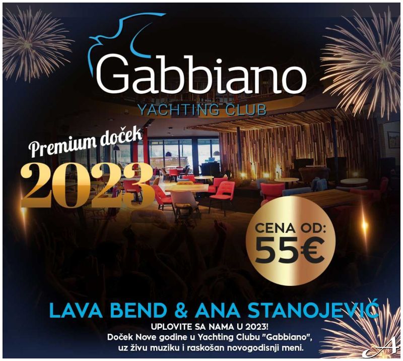 USKORO VIŠE INFORMACIJA O CENAMA, HRANI i PIĆU ZA NOVU GODINU 2024!!!Nova godina 2024 - Restoran GabbianoPremium doček Nove godine 2023.Yachting Club Gabbiano je vrhunski restoran impozantnog enterijera koji se nalazi na Novom Beogradu na romantičnoj lokaciji uz samu obalu Dunava iza hotela Jugoslavija.