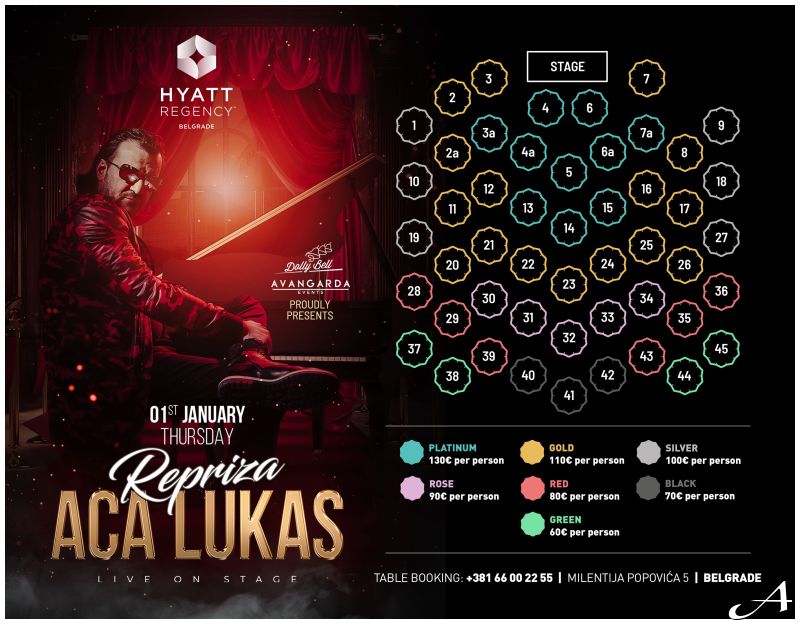 Ako želite da produžite slavlje i uživate u najlepšem beogradskom ambijentu, repriza Nove godine uz Acu Lukasa u hotelu Hyatt je pravi izbor. Rezervišite svoje mesto na vreme i doživite noć punu energije, osmeha i nezaboravne muzike.