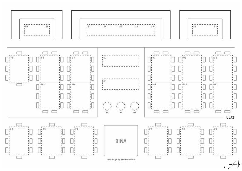 Sedeća mesta (separe, malo i veliko sedenje, polu visoko sedenje) - 40€ - za svako sedenje obavezan je klupski uslov za rezervacije, u zavisnosti od broja osoba i pozicije stola