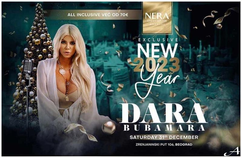 Dara Bubamara biće zadužena za sjajnu atmosferu koja će vladati u restoranu Nera gde ćete uz najveće hitove dočekati 2023. godinu.