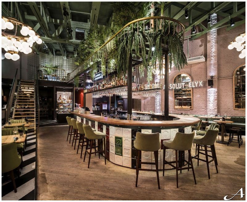 Lokalom dominira impozantni centralni šank, a u skladu sa vašim afinitetima možete odabrati mesta za sedenje (restoranski sto, separe, visoko sedenje ili mesta za barskim stolom ili šankom) .