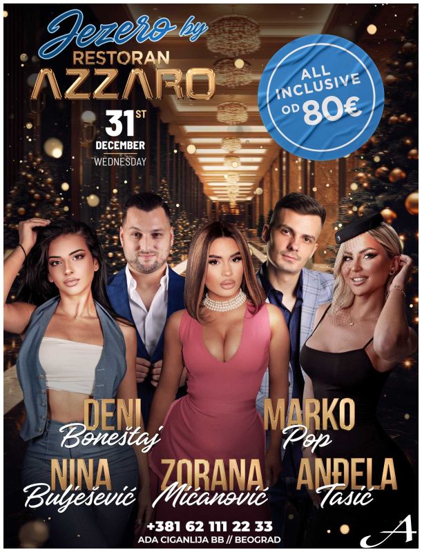 Restoran Jezero by Azzaro, smešten na prelepoj Adi Ciganliji, i ove godine organizuje jedan od najtraženijih dočeka u Beogradu. Spoj prirode, luksuza i odlične muzike stvara savršenu formulu za nezaboravnu novogodišnju noć.