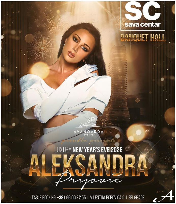 Dočekajte Novu godinu 2026 u Banquet Hall-u Sava Centra uz Aleksandru Prijović, u okruženju koje spaja luksuz, glamur i muziku koja se pamti.