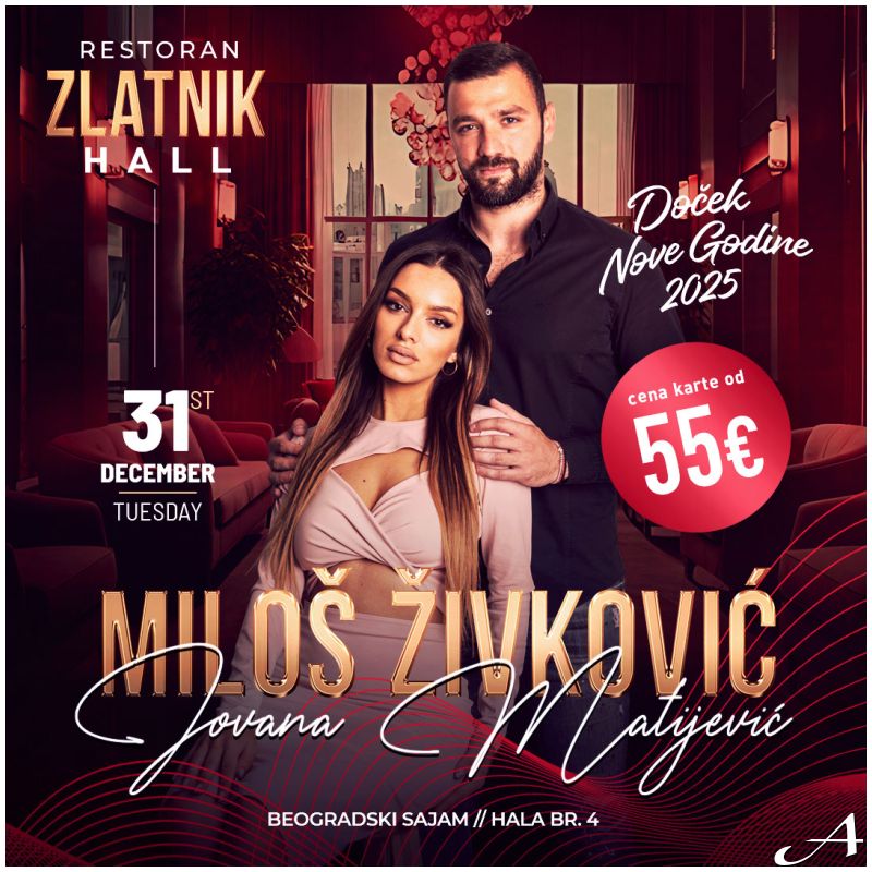 Za doček Nove godine, uživaćete u nastupu dva izvanredna pevača. Samo za vas, na bini će se naći: Miloš Živković i Jovana Matijević, uz pratnju benda.