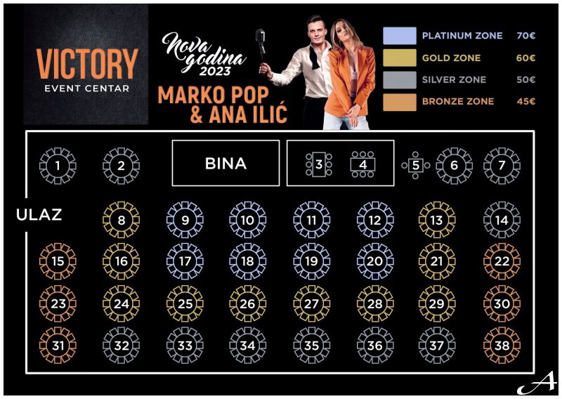 Event centar Victory Nova godina, jedan od najlepših, najuspešnijih i najkvalitetnijih event centara u Beogradu sa besprekornom uslugom, najavljuje spektakularnu proslavu za doček Nove 2023 godine. Jedinstven enterijer, upotpunjen najsavremenijom rasvetom, ozvučenjem, klima i ventilacionim sistemima, ispunjava sve tehničke preduslove da Nova godina bude dočekana na vrhunskom nivou.