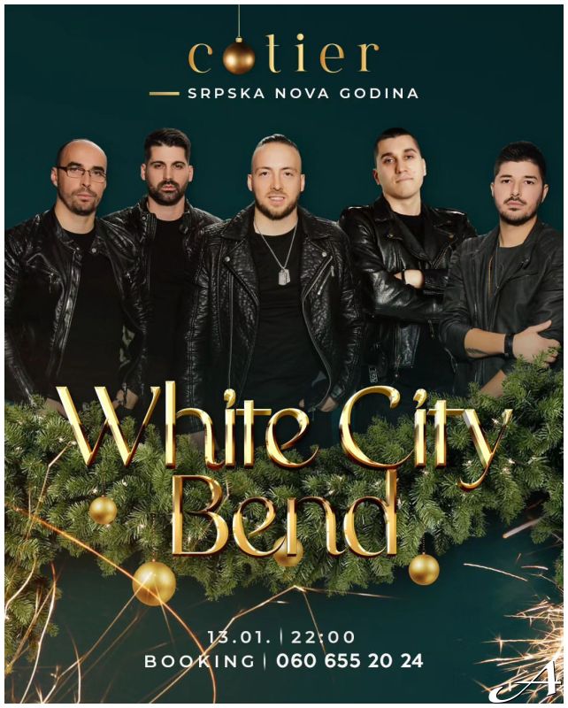 Za ovu posebnu noć, splav Cotier je pripremio nastup fantastičnog White City benda. Poznati po svojoj energičnoj muzici i sposobnosti da razgaljuju srca publike, White City bend obećava noć punu uzbuđenja i ritmova koji će vas držati na nogama sve do ranih jutarnjih sati. Njihov široki repertoar, koji uključuje najveće hitove domaće i strane muzike, garantuje da će svaki trenutak na splavu Cotier biti ispunjen radostima i dobrom zabavom.
