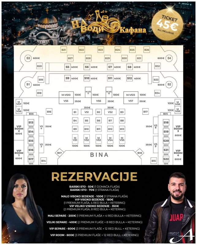 VIP visoko sedenje - 180€ (1 premium flaša pića, 4 Red Bula + ketering)