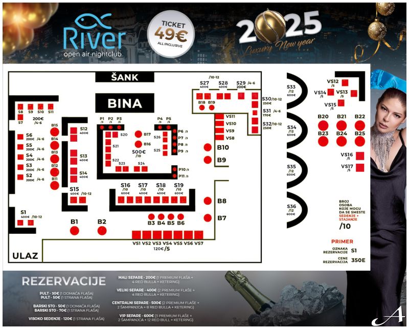 Ove godine, splav River ima posebnu čast da ugosti Vanju Mijatović. Njen vokal, koji su već godinama omiljeni među Beograđanima, obećavaju da će ovo biti noć za pamćenje. Đuskajte pod zvezdama, osetite ritam grada i dozvolite da vas muzika ponese u prve sate 2025. godine.